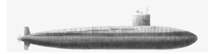 Водоизмещение: надводное - 2200 т, подводное - 2730 т