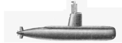 Водоизмещение: надводное - 2116 т, подводное - 2264 т