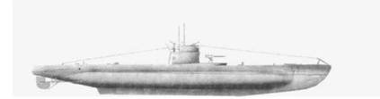 Водоизмещение: надводное - 928 т, подводное - 1131 т Размерения: 64м х 6,9м х 4,9м