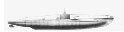 Водоизмещение: надводное - 685 т, подводное - 850 т